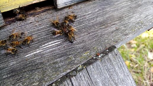 Пчелы-охранники не пускают воровку в улей