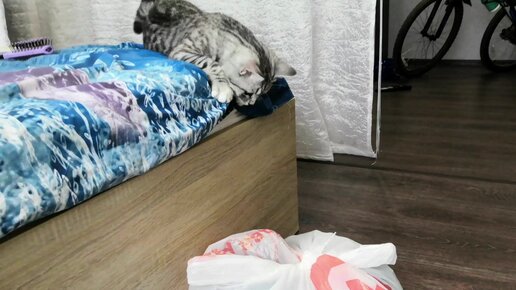 Кошка скромницей стала, раньше на пакетик бы набросилась, а сейчас скромно крутится возле него
