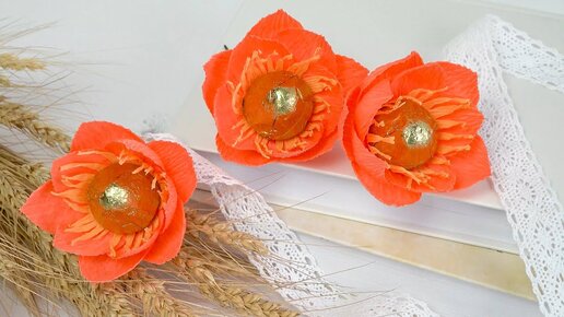 Цветы из конфет и гофрированной бумаги МК