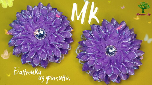 Блестящие бантики Простой лепестки из лазерного фатина//Master diy канзаши