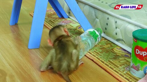 Маленькая мартышка изучает мир. Она совсем еще малышка.