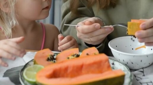 "А папайя сладкая?" Предложила дочке попробовать тропический фрукт и оценить вкус (видео)