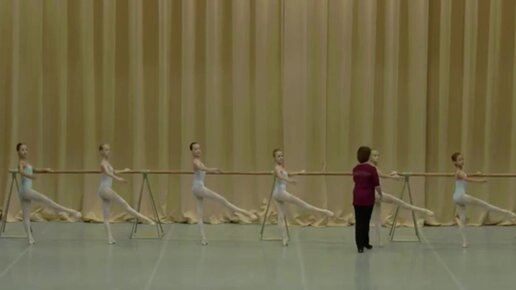 Урок в хореографическом училище. Внимание на постановку рук, головы и корпуса.