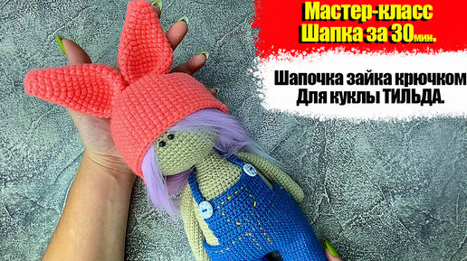 Шапка крючком. Вязаная шапка зайка крючком для куклы за 30 минут. Кукла тильда