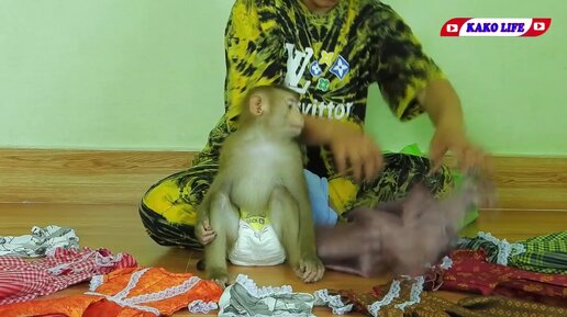 Мартышка примеряет новые наряды. Как вам штанишки?