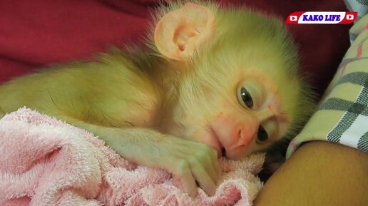 Маленькую мартышку поим молоком с бутылочки. Милое зрелище