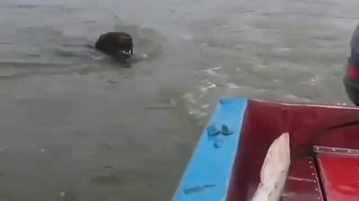 Медведь гоняет лодку. А как бы вы чувствовали себя в такой ситуации?