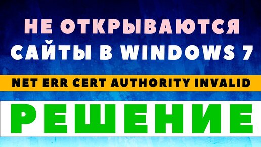 Не Открываются Сайты в Windows 7 ❌ Ошибка NET ERR CERT AUTHORITY INVALID - Что Делать ✅ РЕШЕНИЕ
