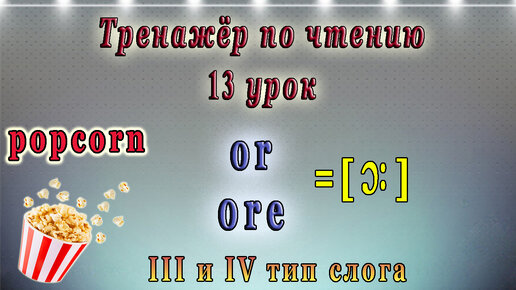 Английский - тренажёр по чтению. 13 урок (чтение гласных в третьем и четвертом типе слога, or, ore)