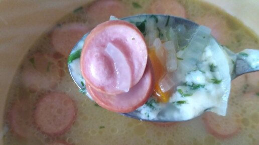 Сварила суп из сосисок, добавила сыр, хоть и простовато, но это блюдо одно из моих любимых