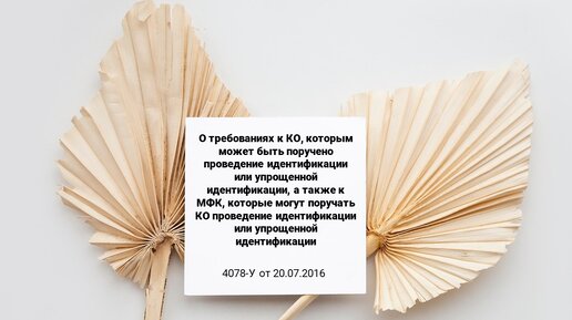 "О требованиях к КО, которым м.б. поручено проведение идентификации или упрощенной идентификации..." 4078-У от 20.07.2016