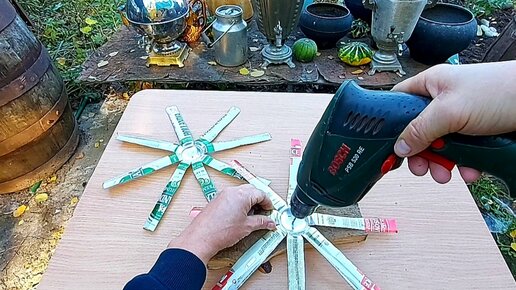Простой двухлопастной ветряк из двух алюминиевых банок