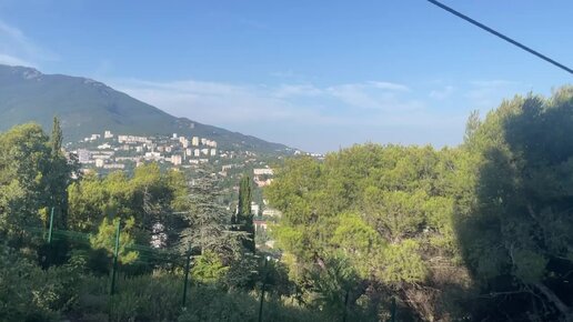 Ялтинский пейзаж, когда с высоты видны горный кряж, город и вековые деревья