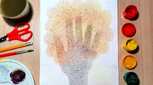 Рисуем осеннее дерево брызгами. Рисование ладошкой