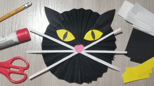 Чёрный кот на Хэллоуин. Поделка из бумаги для детей