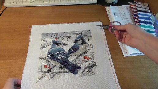 Вышивка/Голубые сойки Готовая работа