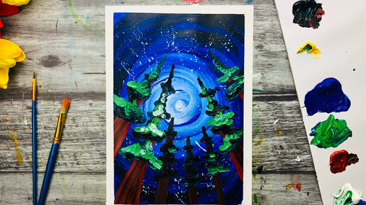КАК НАРИСОВАТЬ НОЧЬ И ЛЕС | ИНТЕРЕСНЫЙ УРОК РИСОВАНИЯ ДЛЯ НАЧИНАЮЩИХ