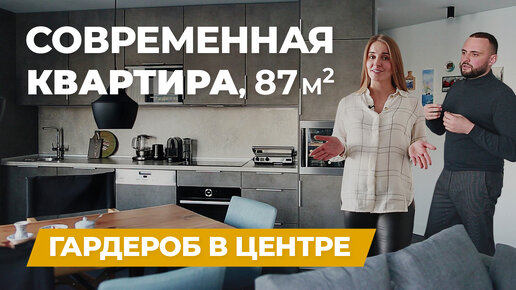 Обзор квартиры 87 кв.м. Гардероб в центре. Дизайн интерьера в современном стиле.