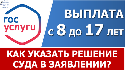 Выплата пособия от 8 до 17 лет. Как указать решение суда в заявлении на портале Госуслуги.