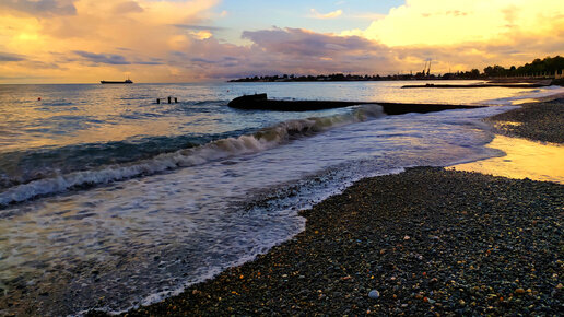 Море и пляж в Сухуми в октябре. Абхазия. Раннее утро. Морской релакс