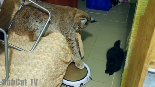 Рысь Ханна научилась пользоваться роботом-пылесосом