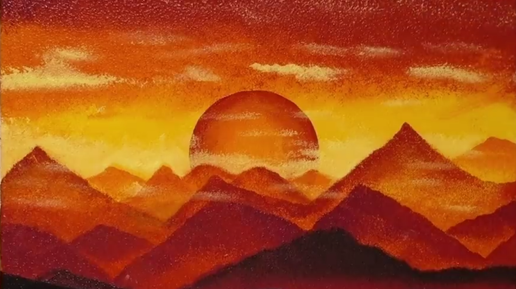 Как нарисовать пейзаж с горами губкой и красками. Просто и очень красиво.