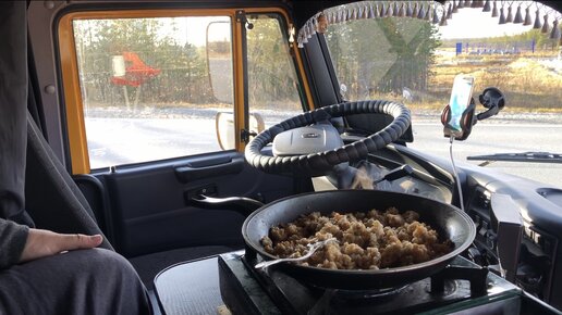 Камаз 4308. Еду в город Ноябрьск. Завтрак,Обед,Ужин.В КамАЗе. Один день из жизни дальнобойщика.