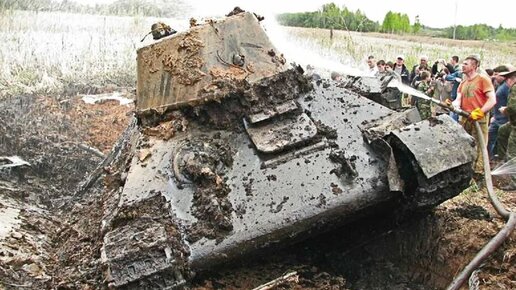 Вытащили из болота Советский танк т34 Прошедший половину Войны. Запуск мотора и состояние танка после подъема.