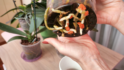 Один из кошачьих БЫСТРО растит корни./ Две орхидеи из Севастополя./ Туда СТРЕМЯТСЯ корни орхидей.