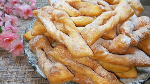 Готовлю быстро к чаю пышный и мягкий хворост на кефире без яиц.
