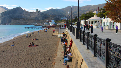 Пляж. Жаркий день начала октября на пляже в городке Судак