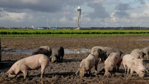 Стадо свиней взяли на работу в амстердамский аэропорт