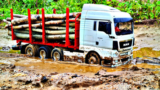 Как вытащить груженый грузовик MAN 8x6 из грязи ... RC Tamiya Truck