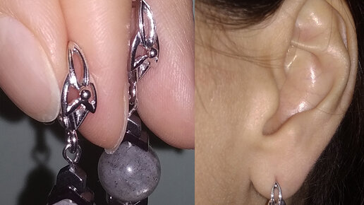 Серьги 925 серебро "Воссоединение", гематит, лабрадор или другие камни.