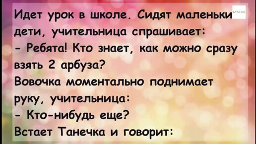 Идет урок в школе. Учительница спрашивает: - Кто знает, как можно сразу взять 2 арбуза? Анекдот