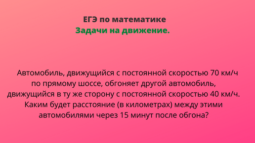 Автомобиль, движущийся с постоянной скоростью 70 км/ч, обгоняет другой автомобиль