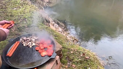 АНГЛИЙСКИЙ ЗАВТРАК В СКОВОРОДЕ НА КОСТРЕ...