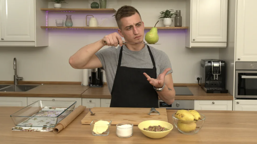 Готовит мужчина: печеную грушу подаём с пломбиром и фисташками – ваша любимая точно оценит