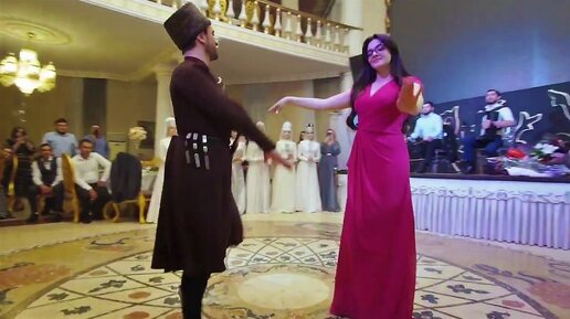 Танцы на Черкесской свадьбе.Приглашенные танцоры в костюмах устроили праздник