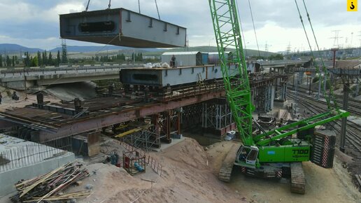Монтаж секции пролета путепровода над ЖД на 8 этапе трассы Таврида