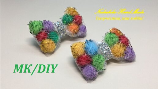 Новогодние бантики из помпонов. МК/DIY. Flowers from ribbons.