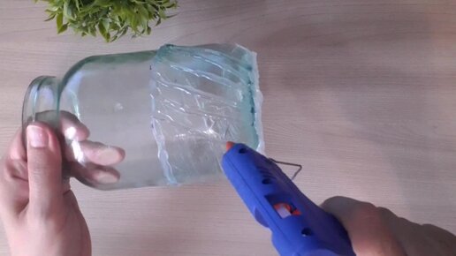 Взяла клеевой пистолет, стеклянную банку и сделала красивую корзину своими руками