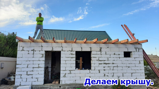 Вот и дошло дело до крыши. Не смотря на отсутствие опыта и маленький скат, получилось хорошо.