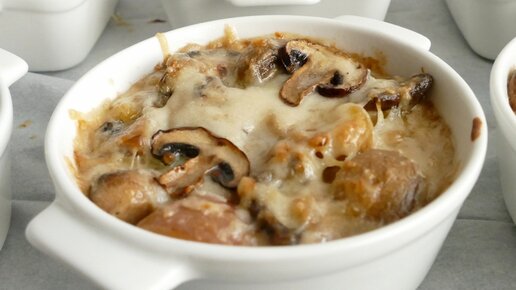Приготовьте Грибы в сметане с картошкой запечённые в духовке