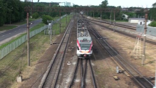 Городская электричка и эшелон, уезжающий вдаль на учения Запад 2021