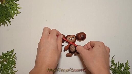 Смастерила Чебурашку из каштанов, может стоять сам.