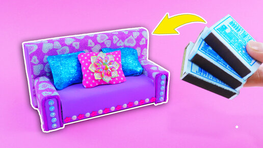 Дочка удивилась, когда узнала, из чего я сделала диван для кукол. Она была в восторге! Мебель для кукол за копейки!