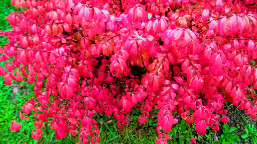 Посмотрите, насколько красив бересклет крылатый, одетый в багрянец. Лучшего солитера не найти.