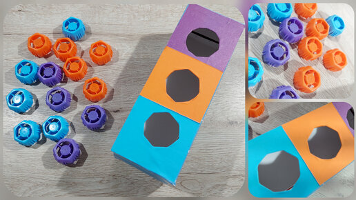 Из не нужных коробок и крышек от пюре получили классную развивашку