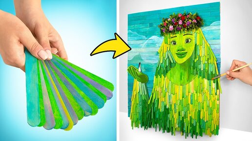 Картина из палочек от мороженого по мотивам мультфильма «Моана»